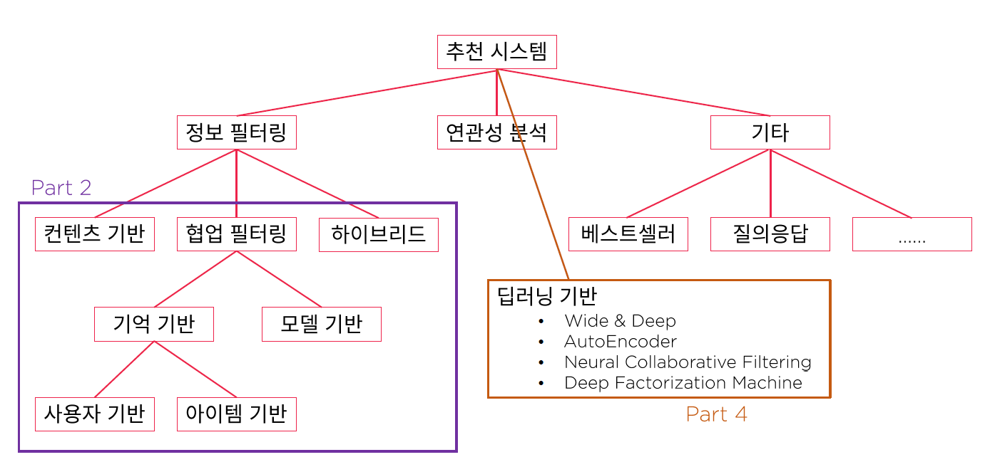 정보 필터링 기술의 일종으로, 어떤 대상에게 어떤 아이템을 데이터 기반으로 추천해주는 알고리즘입니다. 현업에서는 RecSys라는 분야로 구분되고는 합니다.