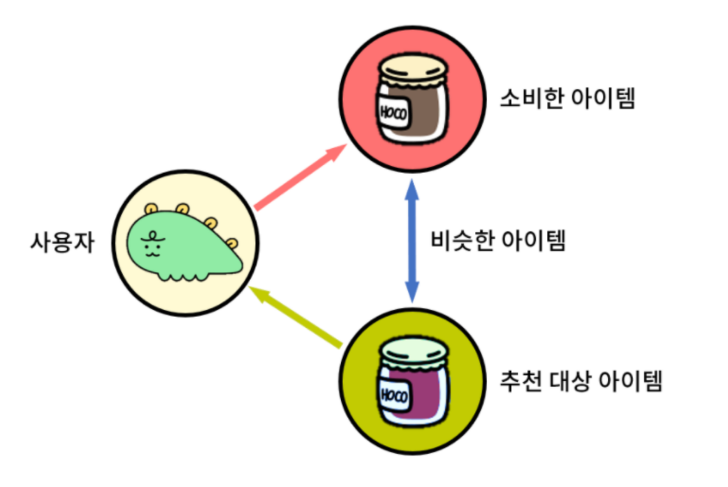 User의 과거 이력을 기반으로 유사한 Item을 추천해주는 방식입니다. User의 과거 로그 정보 외에도 Item의 기본 정보가 필요할 것입니다. 해당 Item을 설명할 수 있는 특징을 모델이 이해할 수 있는 형태인 벡터로 바꿔주는 벡터화 작업이 수행되어야 합니다.