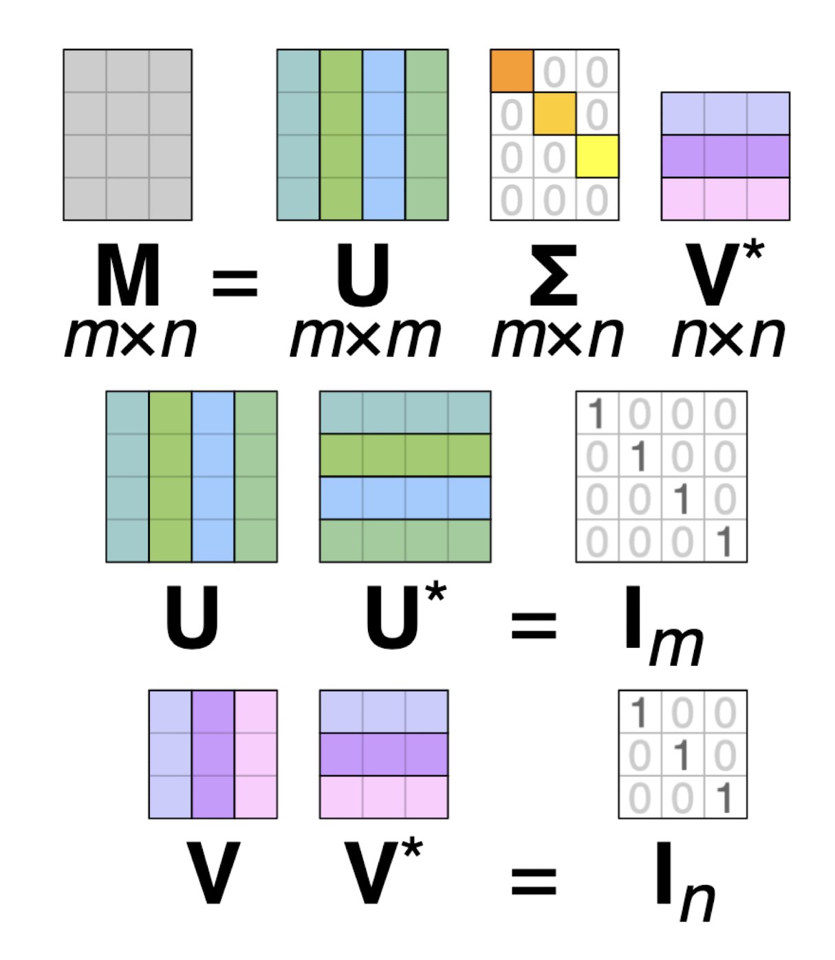 - \(U(m*m)\)와 \(V(n*n)\)는 orthogonal matrix