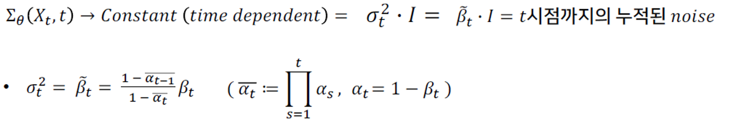 학습 대상은 \(\mu_\theta\left(X_t, t\right)\), \(\Sigma_\theta\left(X_t, t\right)\)이다.
