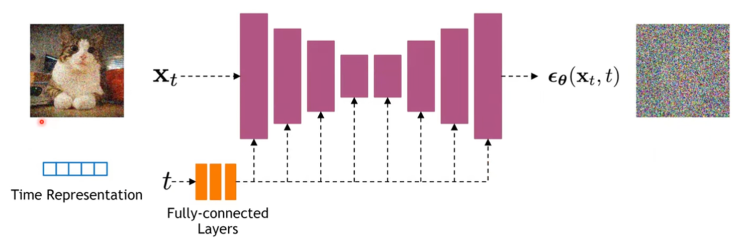 결국 DDPM model(\(Ⲉ_θ\))이 학습해야 하는 것은 주어진 t시점의 noise()뿐이다.