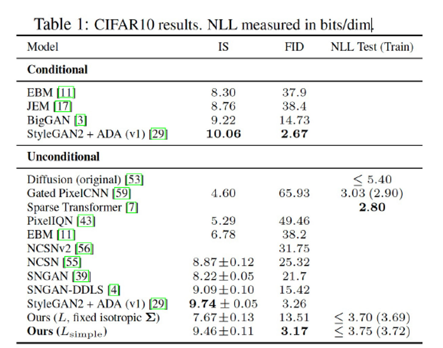 DDPM의 FID score는 3.17로서 Unconditional 생성모형 중 가장 높은 sample quality를 보인다.