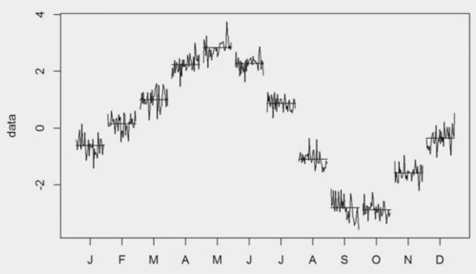 위의 그림이 하나의 계절을 월별로 분류한 그림입니다. 월별 평균 수준을 보여주고 있고(수평선), 그 주위로 실제 관측치가 표시됩니다.