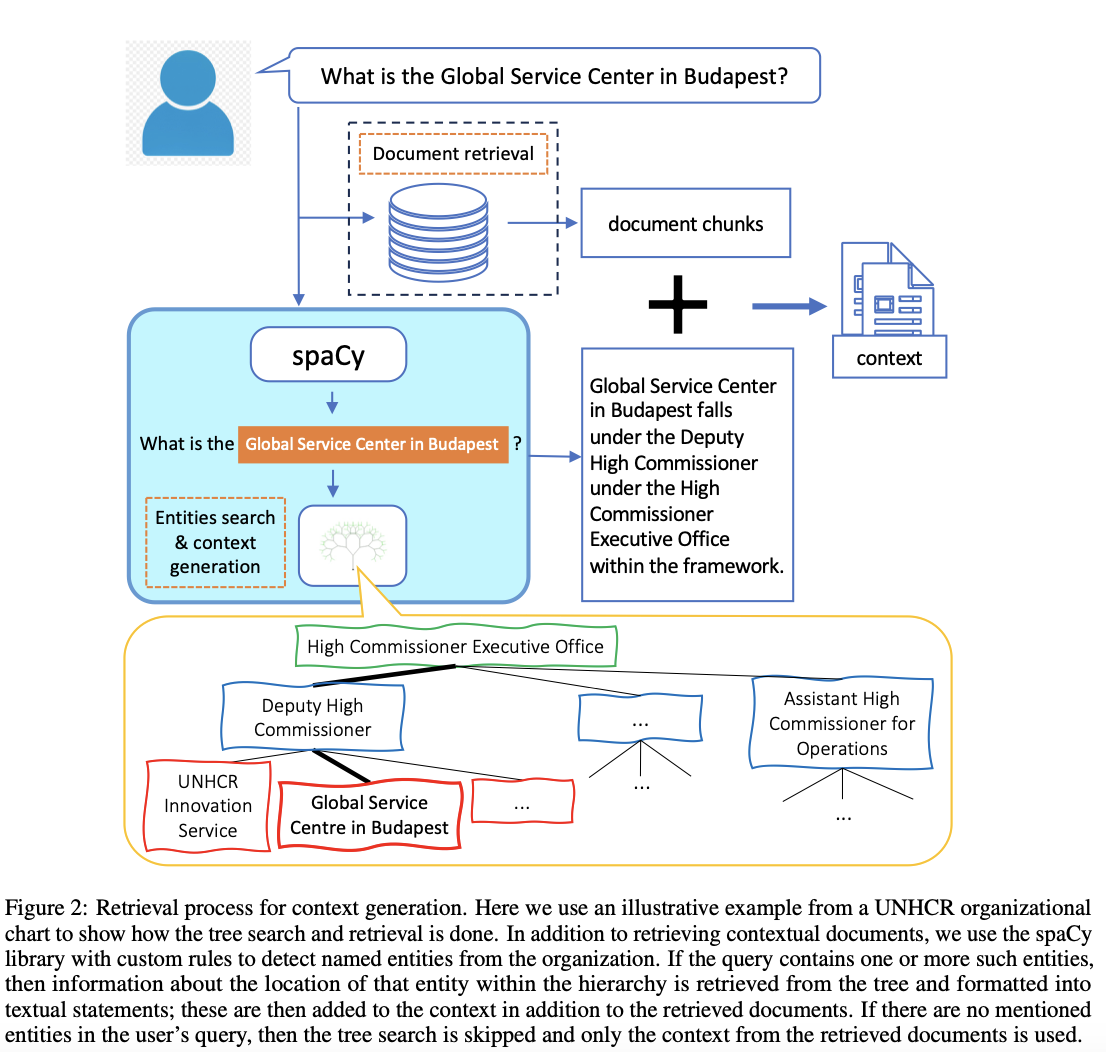 예를 들어, 그림 2에 나타난 사용자 쿼리에서, spaCy는 “Budapest”를 단순히 위치(Location)로 감지하지만, “Global Service Center in Budapest”가 UNHCR 조직 내 엔터티라는 사실은 놓침