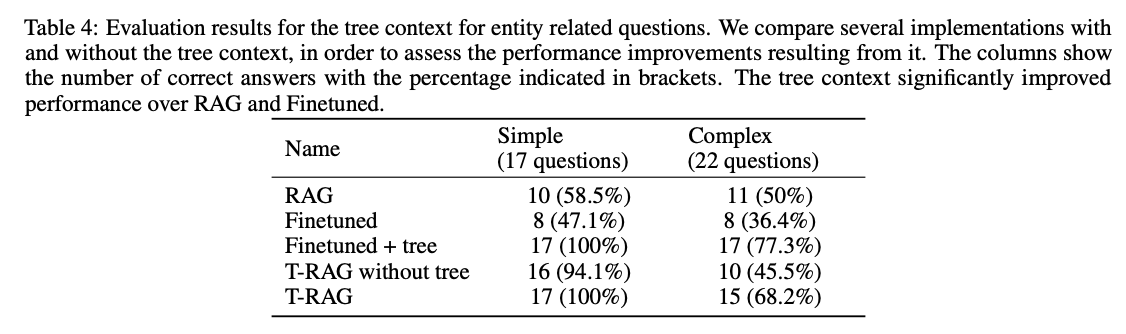 트리 구조를 사용하면 엔터티 관련된 질문을 했을 때 RAG나 파인튜닝된 모델보다 훨씬 성능이 잘 나왔다