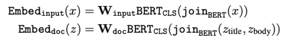 - document z와 Input x의 임베딩 벡터 간의 내적값을 계산