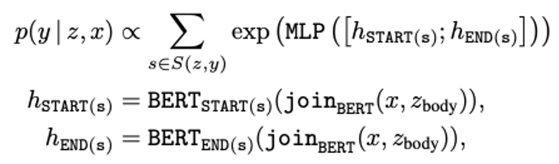 \(S(z, y)\): 문서 z에서 정답 y와 일치하는 Span들의 집합 \