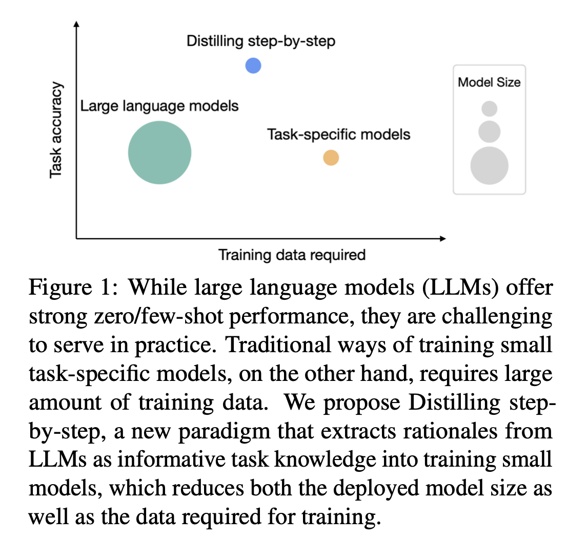 - distilling step-by-step: 문제 풀이 과정을 학습하여 적은 문제만 풀어도 효율적으로 성능 향상 가능