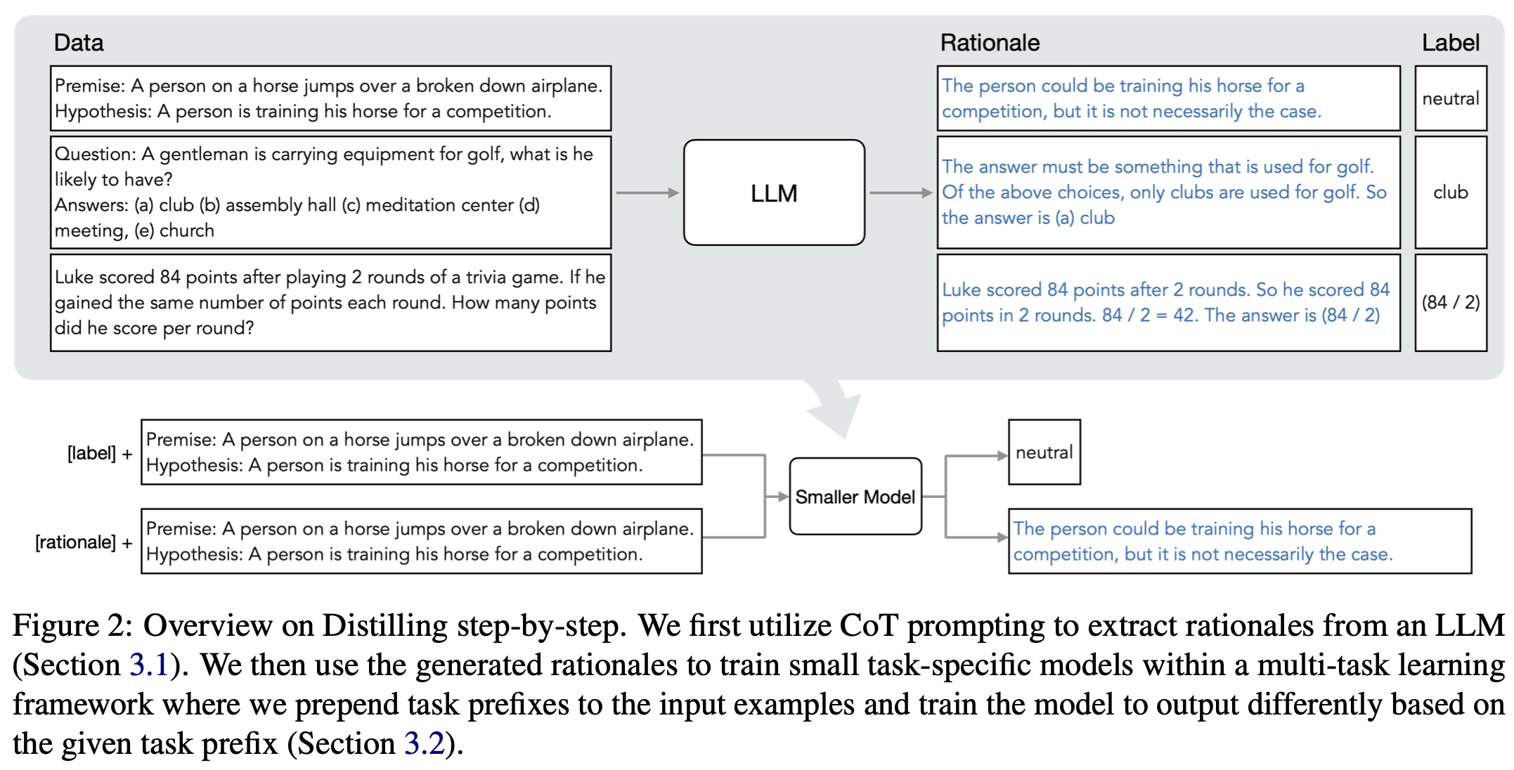 - 이를 본 논문에서는 Distilling step-by-step 기법이라고 부른다.