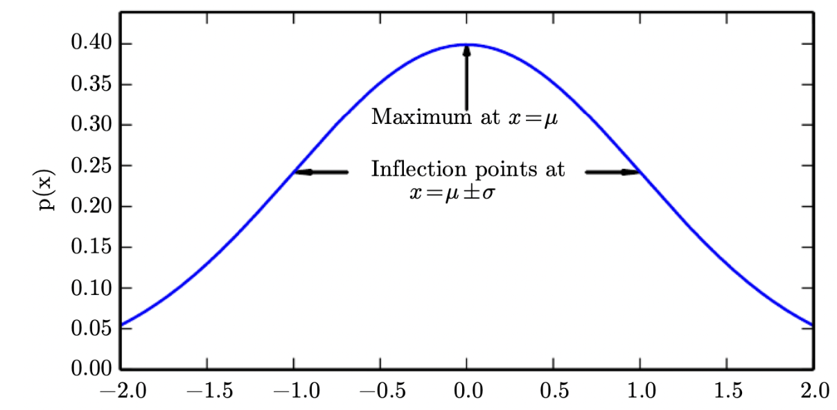 가우시안 분포의 확률밀도함수는 다음과 같습니다.(암기할 필요는 없습니다) \[p\left(X \mid \mu, \sigma^2\right)=\frac{1}{\sqrt{2 \pi \sigma^2}} \exp \left(-\frac{(X-\mu)^2}{2 \sigma^2}\right)\]