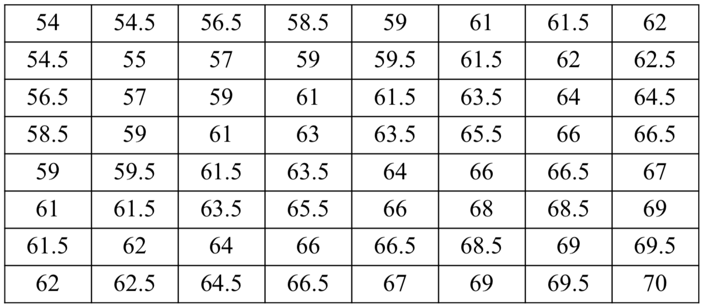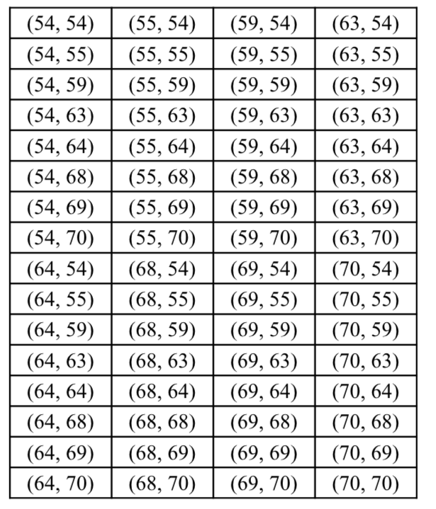 - 모집단을 54, 55, 59, 63, 64, 68, 69, 70 의 8개 숫자로 가정한다.